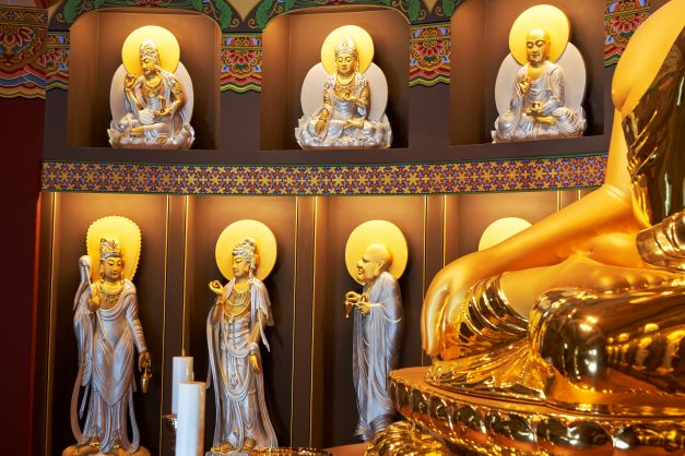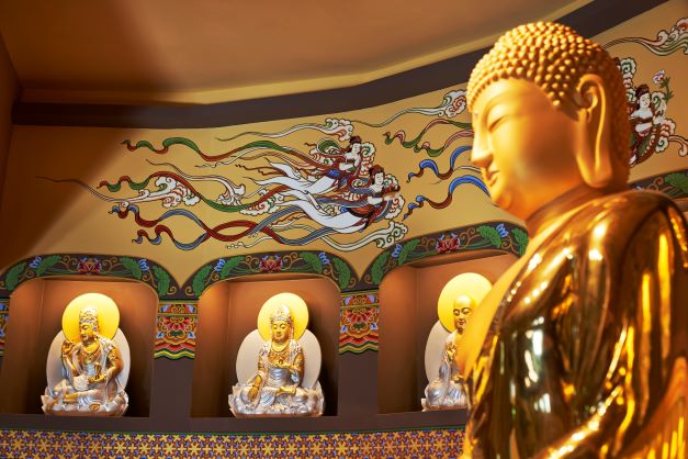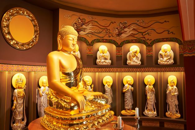 일체법을 온 세상에 전하여 이 땅에 불국정토를 건설하겠다는 서원을 세우고, 이 땅이 불국토라는 불국사 석굴암의 사상을 이어받기 위해서 석굴암 부처님의 모습을 그대도 재현하여 현대화된 법당을 만들고자 발원하였습니다. 2017년 4월부터 조각을 시작한 부처님은 2020년 5월 드디어 조성을 마쳤습니다. 천일기도와 수만 번의 정성스런 손길의 결과, 기도 수행자의 모든 소원을 성취해주시는 불단까지 합쳐서 3.3m의 높이에 이르는 거룩한 모습입니다.